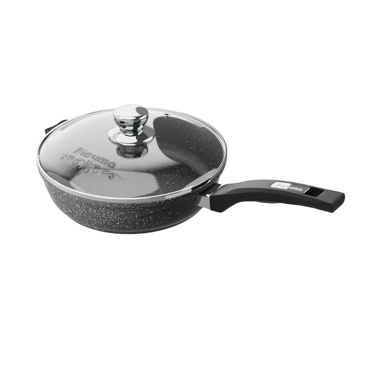 мечта с26802 гранит black 26см с несъемной ручкой и стекл. крышкой сковорода