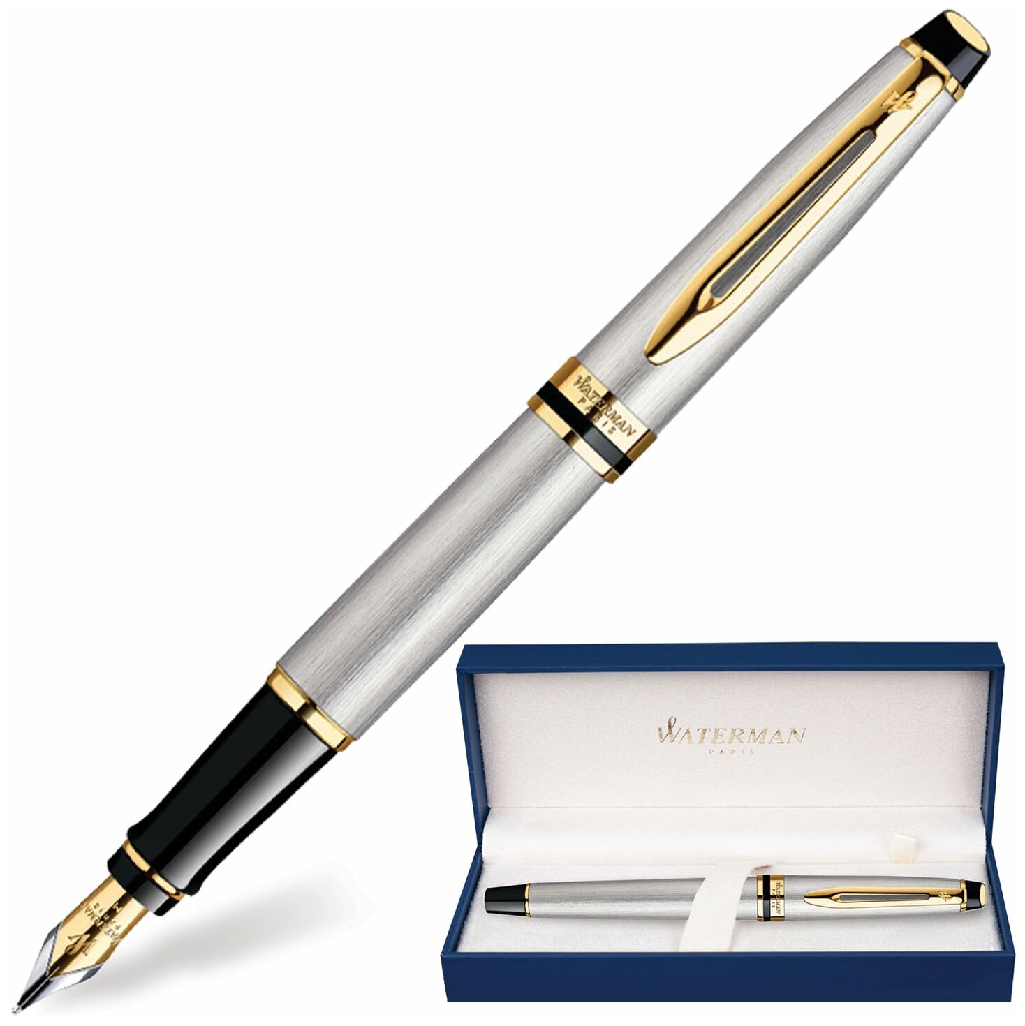 Ручка перьевая Waterman "Expert Stainless Steel GT", синий, 0,8мм, подарочная упаковка, 180508