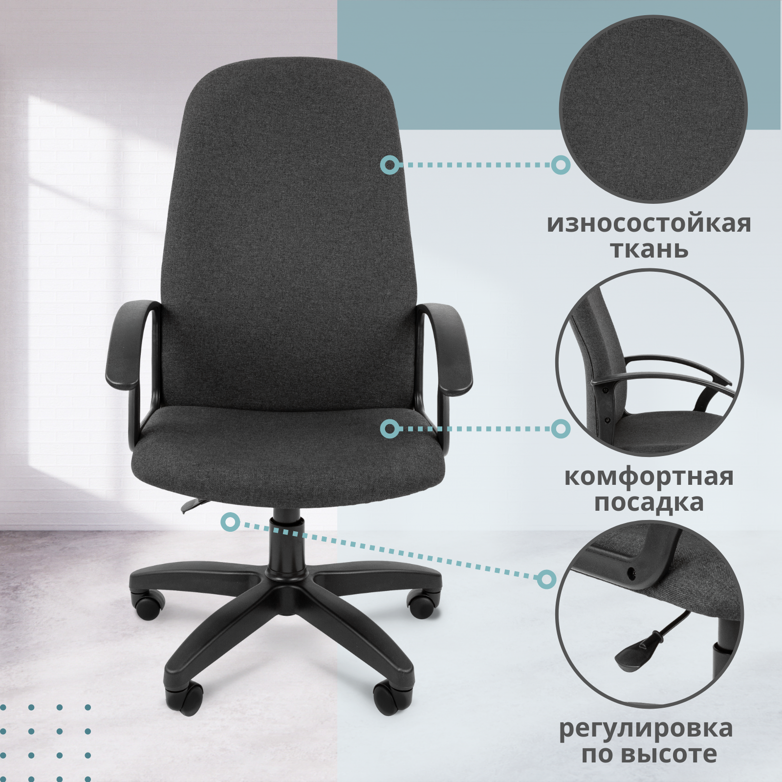 | Конструктивные особенности | газлифт / колеса (ролики) / подлокотники / поясничный упор |
