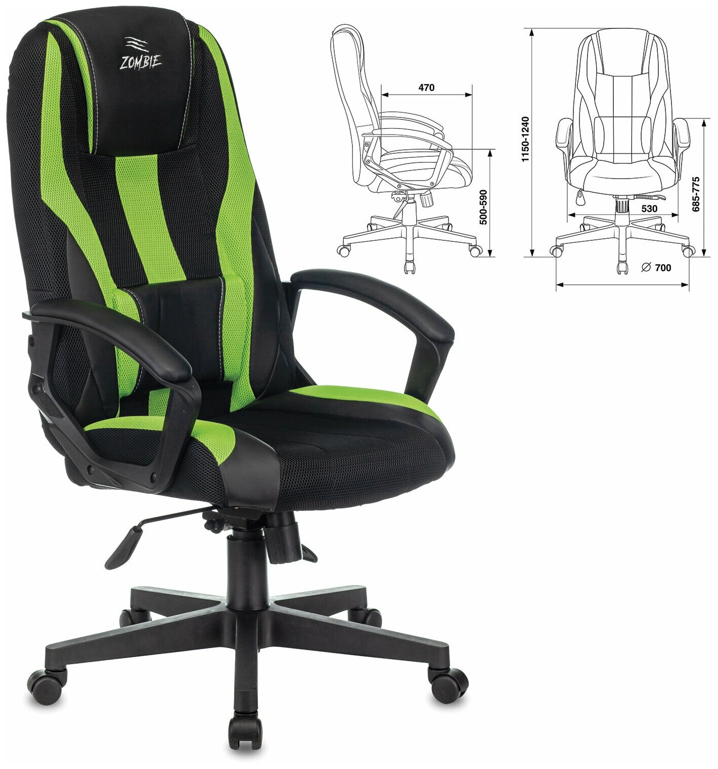 Купить Кресло компьютерное ZOMBIE-9/BL+SD, подушка, экокожа/ткань, черное/зеленое