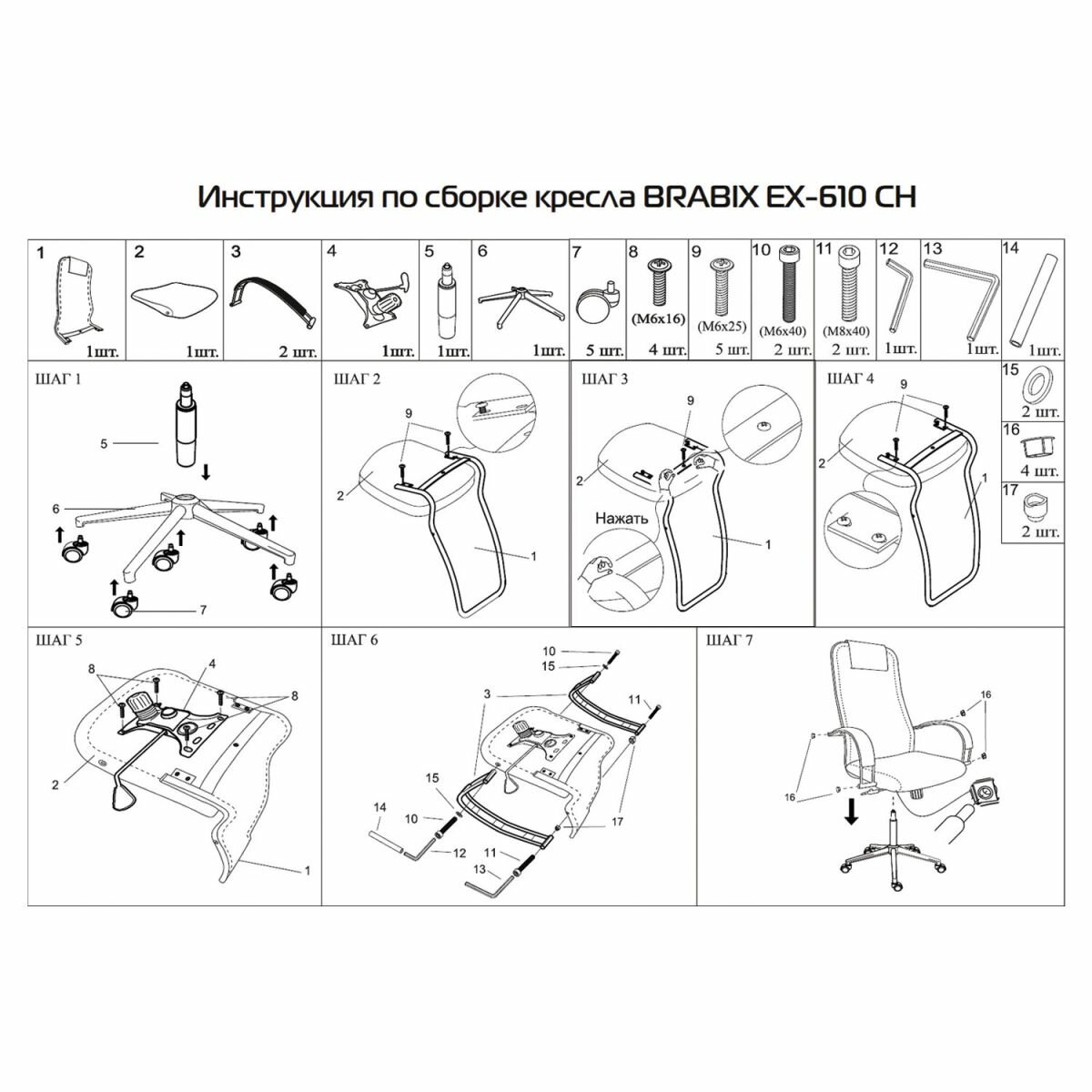 Кресло офисное BRABIX "Pilot EX-610 CH" premium, хром, кожзам, черное, 532418 В комплекте: 1шт.