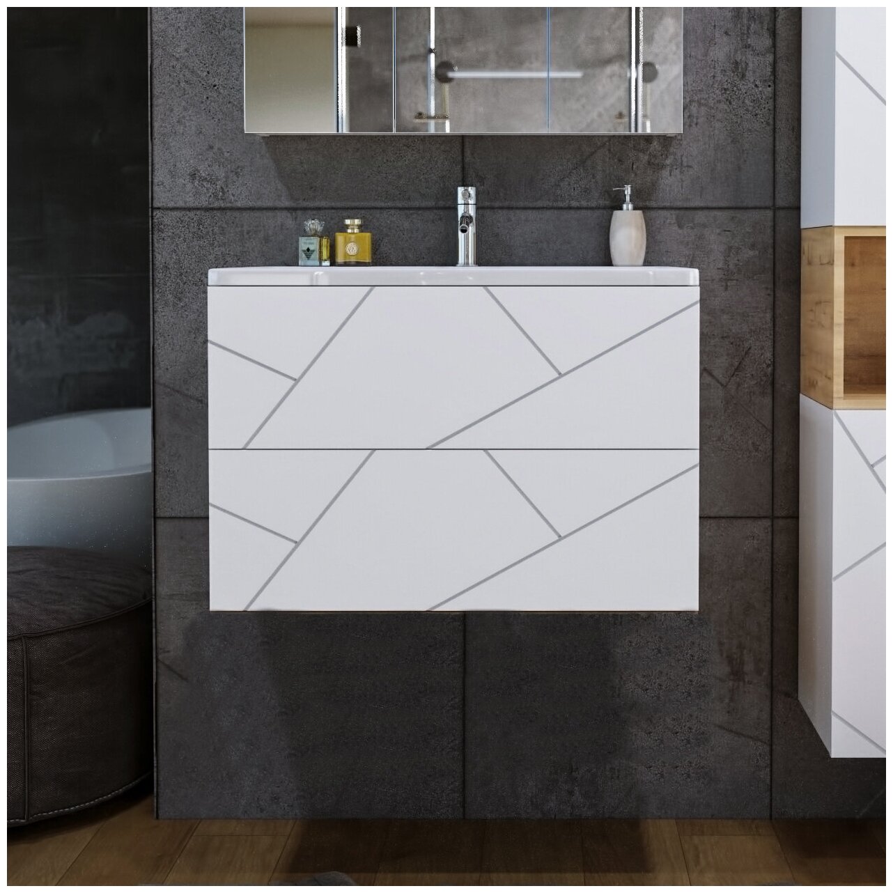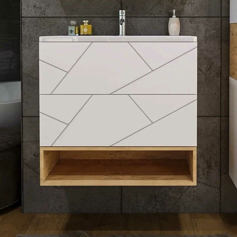 Тумба с раковиной для ванной Кристалл 80 без ниши белая. интересное: