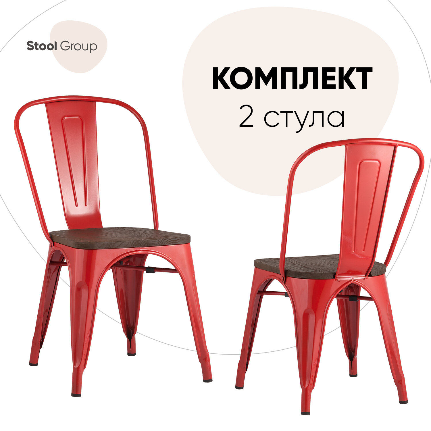 Купить Стул TOLIX красный глянцевый + темное дерево(комплект 2 шт)