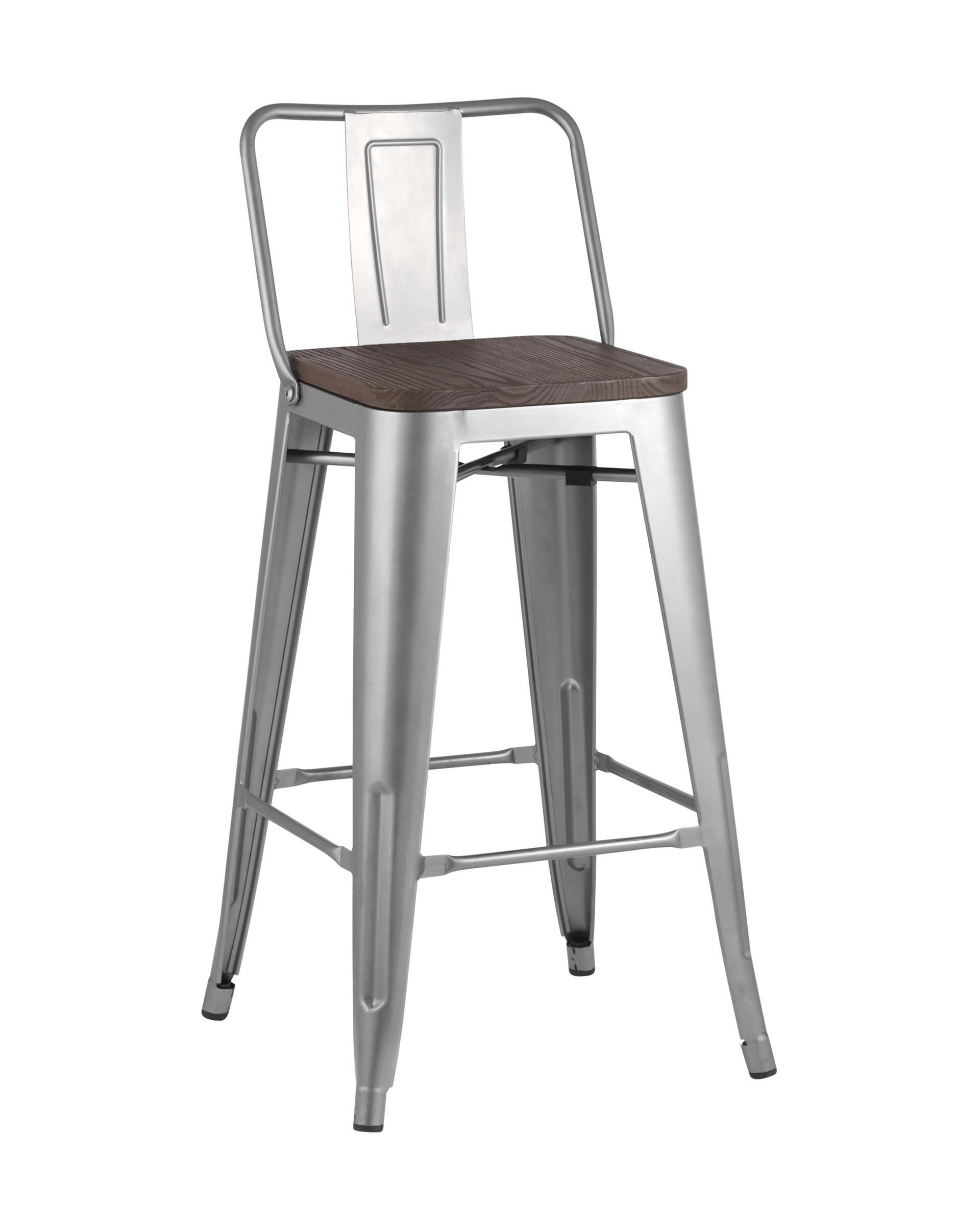 Стул полубарный TOLIX со спинкой серебристый матовый + темное дерево