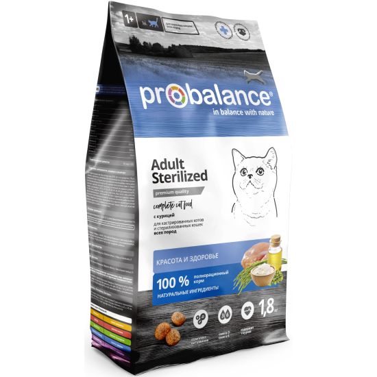 Корм ProBalance Sterilized для кастрированных котов и стерилизованных кошек, 1,8 кг