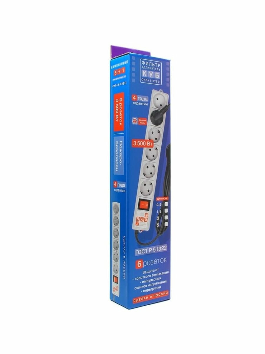 Фильтр-удлинитель Power Cube 1,9 м 6 розеток (белый) 16А/3,5кВт интересное: