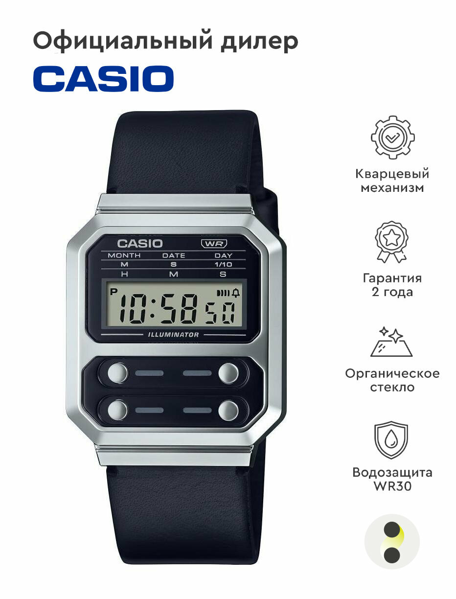 Наручные часы CASIO Vintage A100WE-7B, серебряный, черный