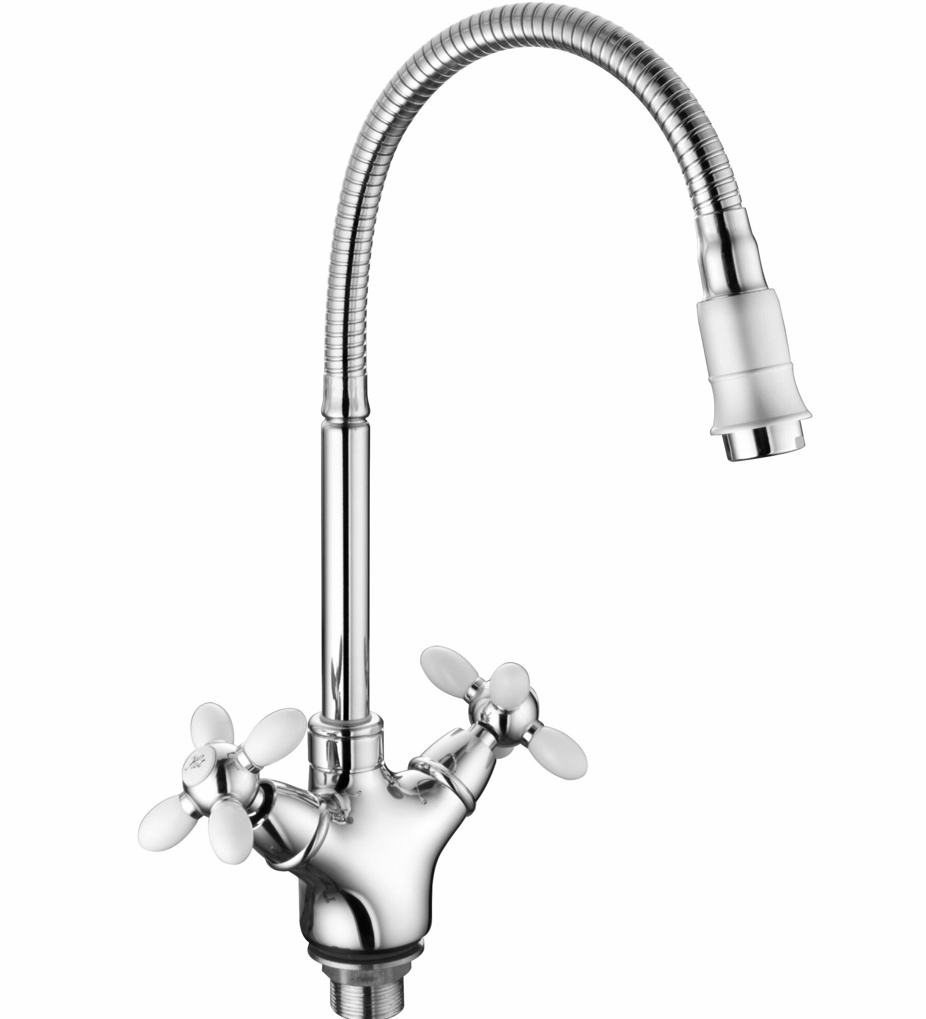 Смеситель кухня с гибким изливом на гайке (крест красный). Силумин, Accoona A4882N