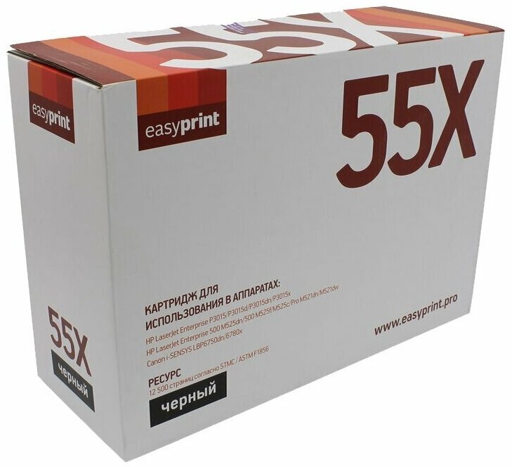 Картридж EasyPrint LH-55X для HP LJ P3015/Pro M521/Enterprise M525/Canon LBP6750dn/6780x/MF512x/515x (12500 стр.) с чипом 255X/724H
