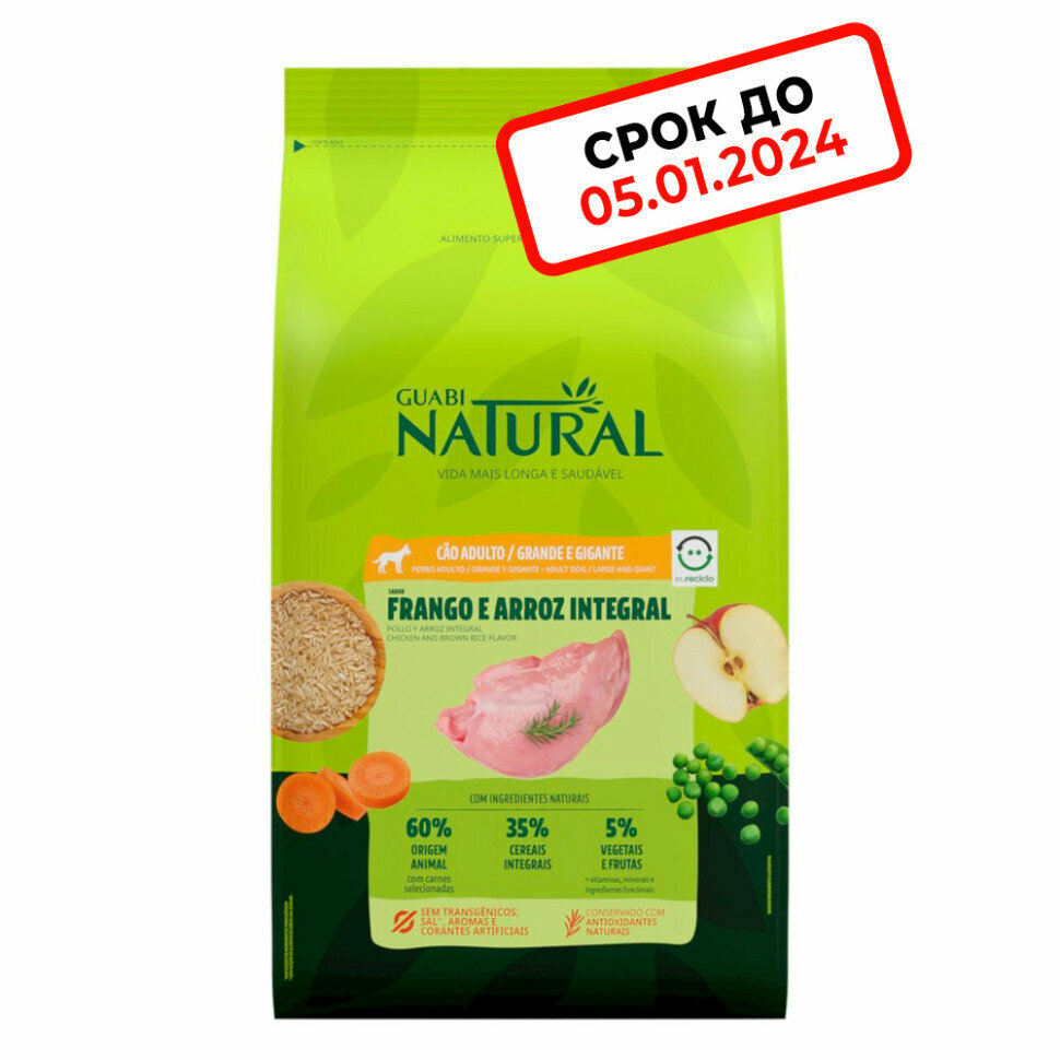 Срок до 05-01-2024 Guabi Natural Dog Adult cухой корм для взрослых собак крупных пород, с цыпленком и коричневым рисом - 12 кг