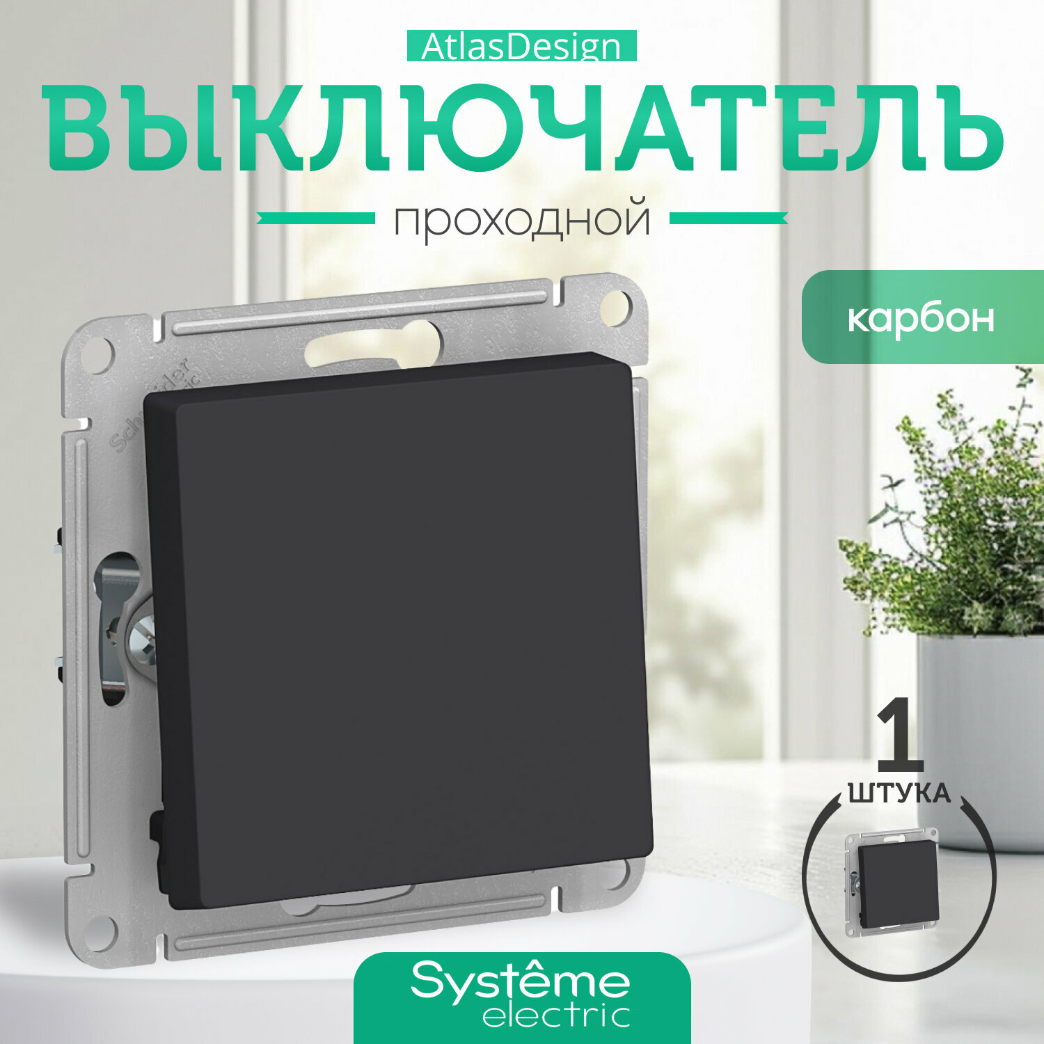 Переключатель 1-клавишный Schneider Electric/Systeme Electric AtlasDesign, сх.6, 10АХ, механизм, карбон ATN001061 (комплект 5 шт.)