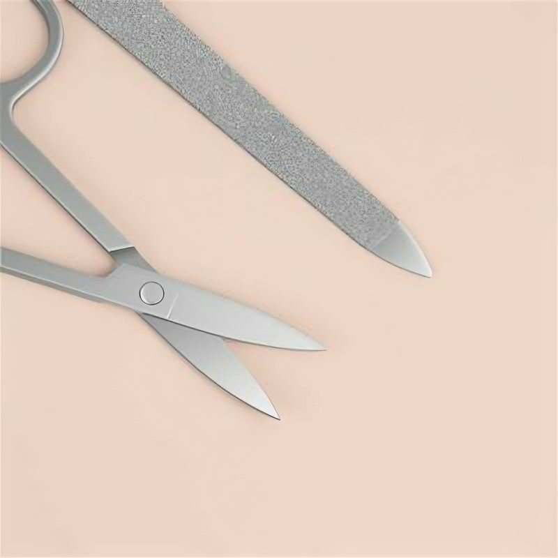 Набор маникюр 2пр (ножницы пилка металл) чёрн/серебр пакет QF 4103281