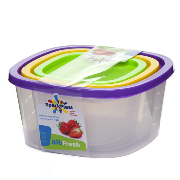 Контейнер д/хран.продуктов BioFresh 3шт (0,5/0,9/1,55л) квадрат IS10508 Spark Plast интересное: