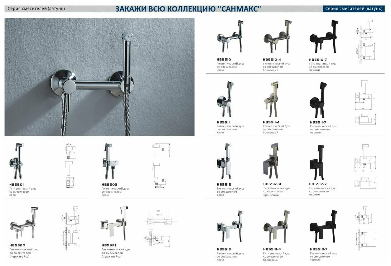| Дополнительная информация | Продукция компании Haiba производится на самом современном оборудование из Германии, Италии и Испании. Благодаря безупречному качеству, продукция бренда Haiba успешно продаётся и пользуется популярностью в более чем 100 странах мира. Смеситель для унитаза с гигиеническим душем лейкой универсальный из латуни. |