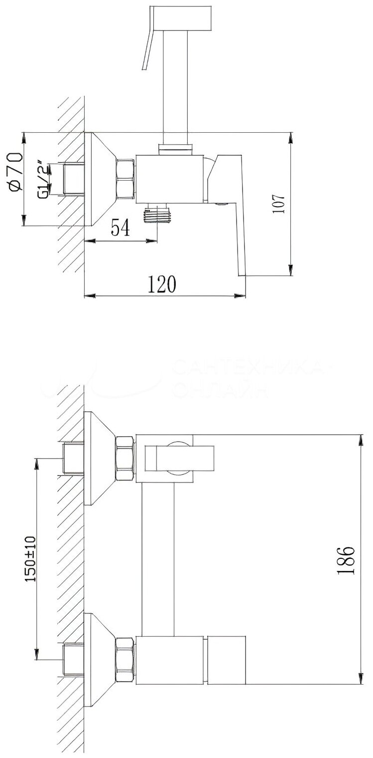 Смеситель для гигиенического душа HAIBA HB5510 / настенный , холодная и горячая вода, латунь, хром глянец