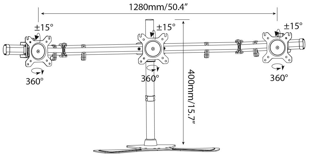 Cactus Крепления для проекторов CS-VM-MP330S-AL серебристый Кронштейн для 3-х мониторов 15"-24" макс.8кг настольный наклон