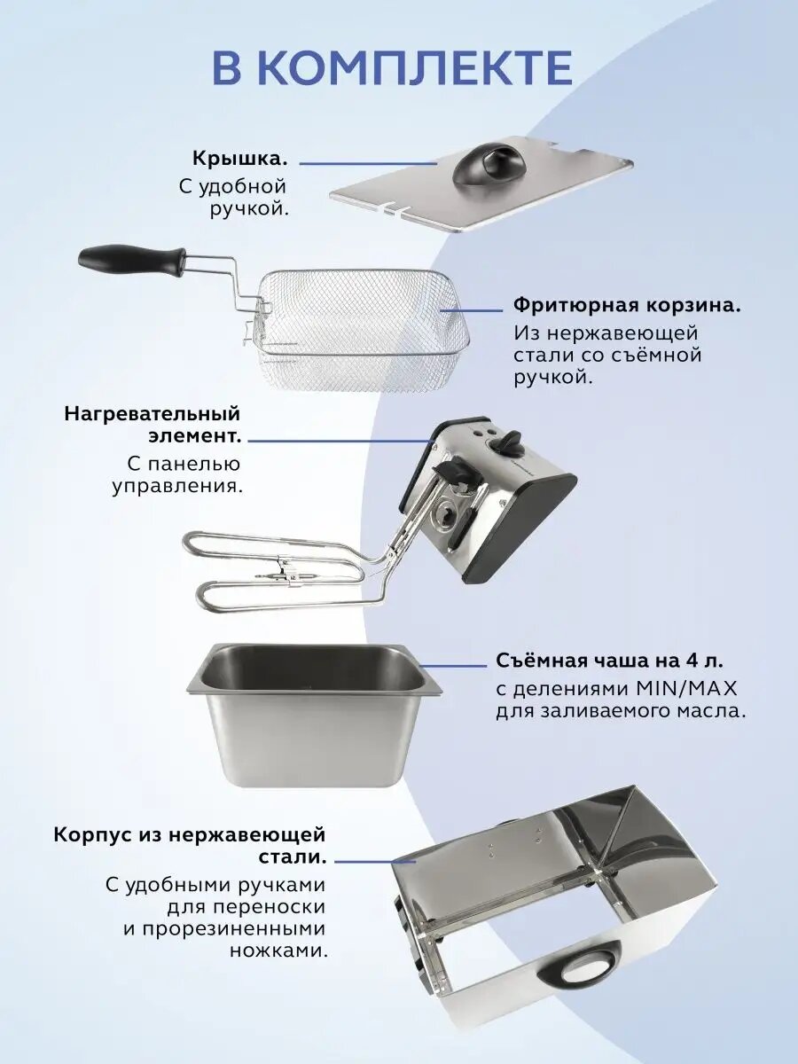 Фритюрница электрическая для кухни GASTRORAG CZG40X с большой съемной чашей 4 л, настольная электрофритюрница для картофеля фри, для картошки, для всей семьи