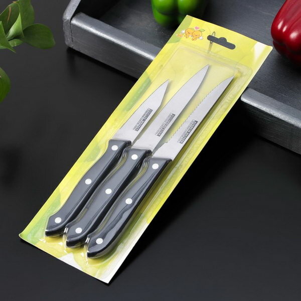 Набор кухонных ножей Кулинарные изыски, 3 предмета, лезвие 8 см, 11 см, 11 см, цвет чёрный