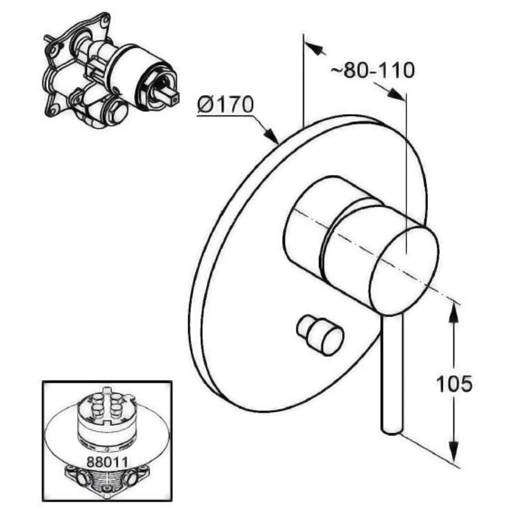 Лицевая часть встраиваемого смесителя Kludi Bozz, арт. 386500576, 2 функции, круглая