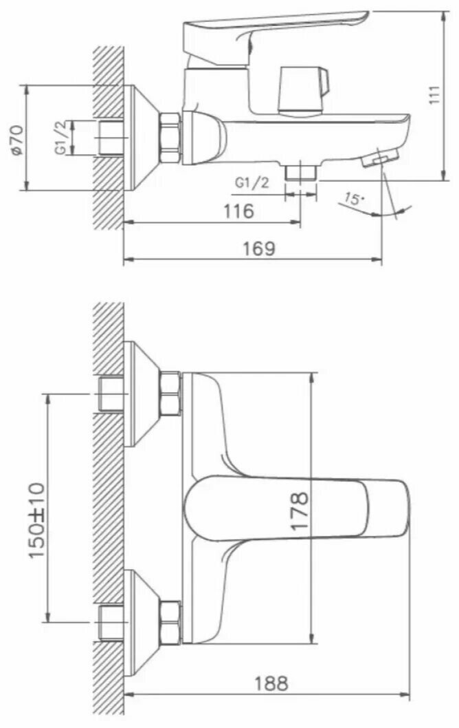 | Длина излива | 188 мм |