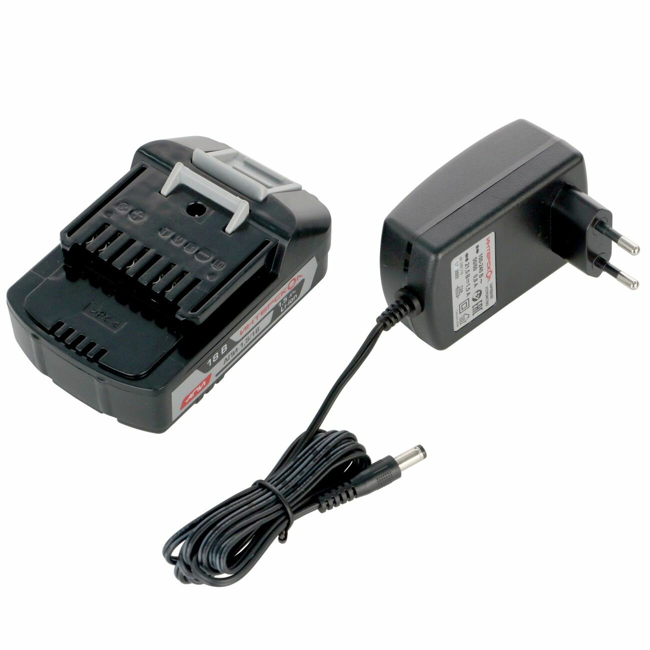 | Подробная комплектация | бесщеточная аккумуляторная дрель-шуруповерт, батарея аккумуляторная, 1,5 Ач 2шт, ЗУ-1,5/18, кейс |