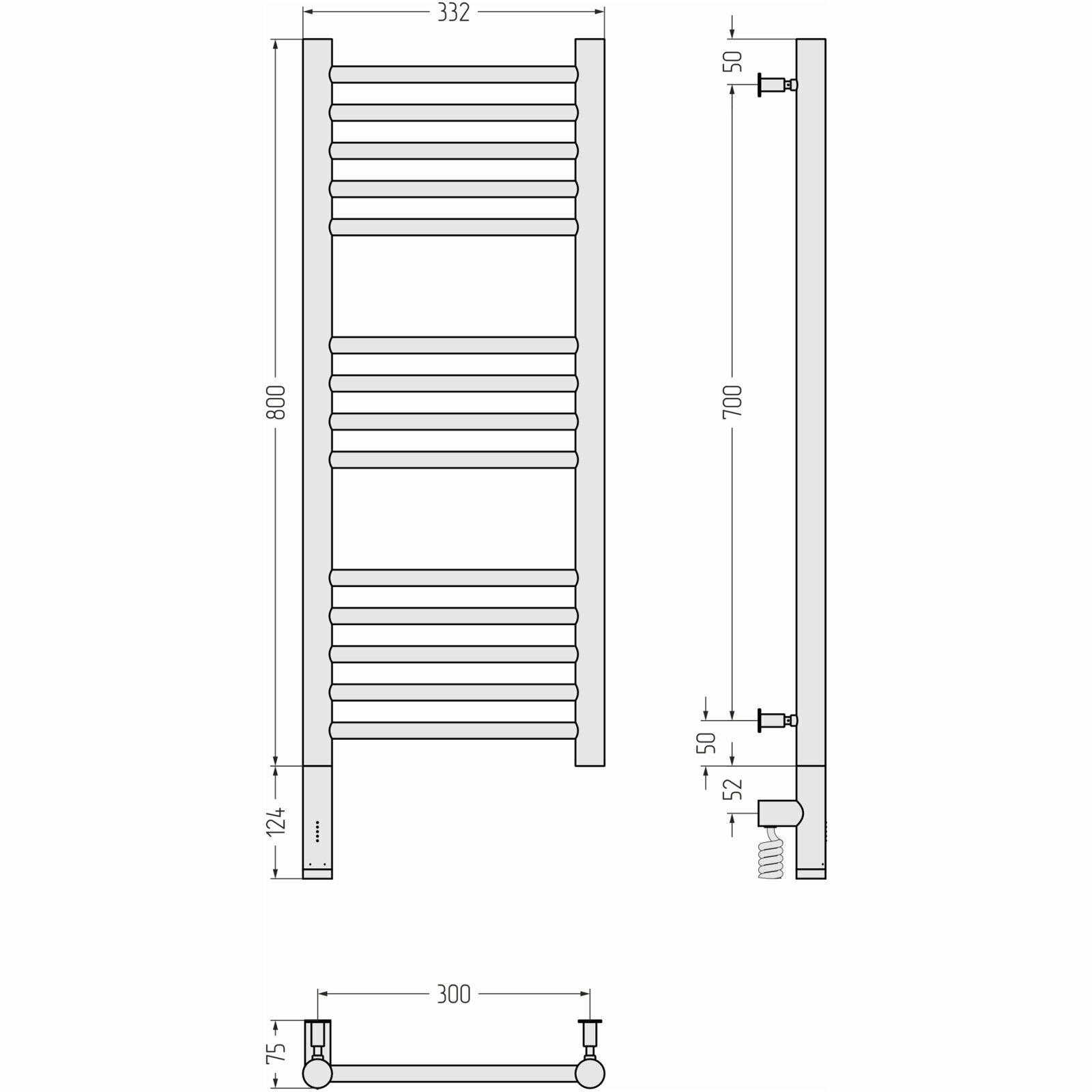 Полотенцесушитель электрический 800x300 белый матовый МЭМ левый, перемычка прямая Сунержа Богема 3.0 30-5804-8030
