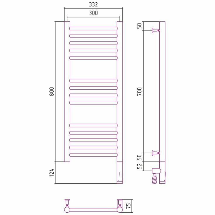 Сунержа Полотенцесушитель электрический Сунержа 00-5805-8030 Богема 3.0 РЭБ, прямая, 800х300 мм/ МЭМ правый, без покрытия