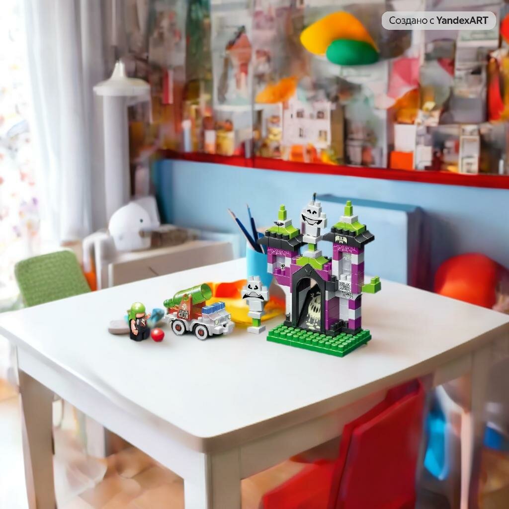 Детская развивающая игрушка конструктор Bauer Набор дом с привидениями, пушкой и охотником в коробке "Monster Blocks" 3+