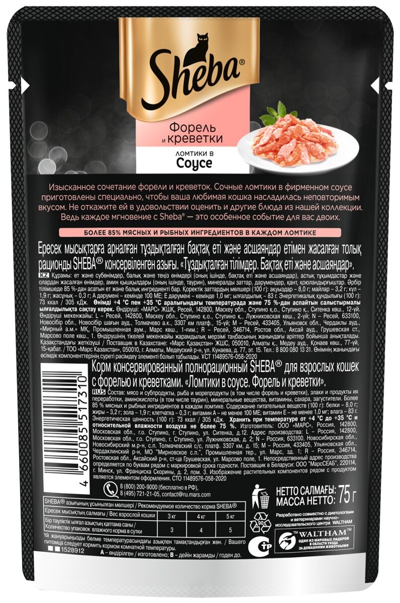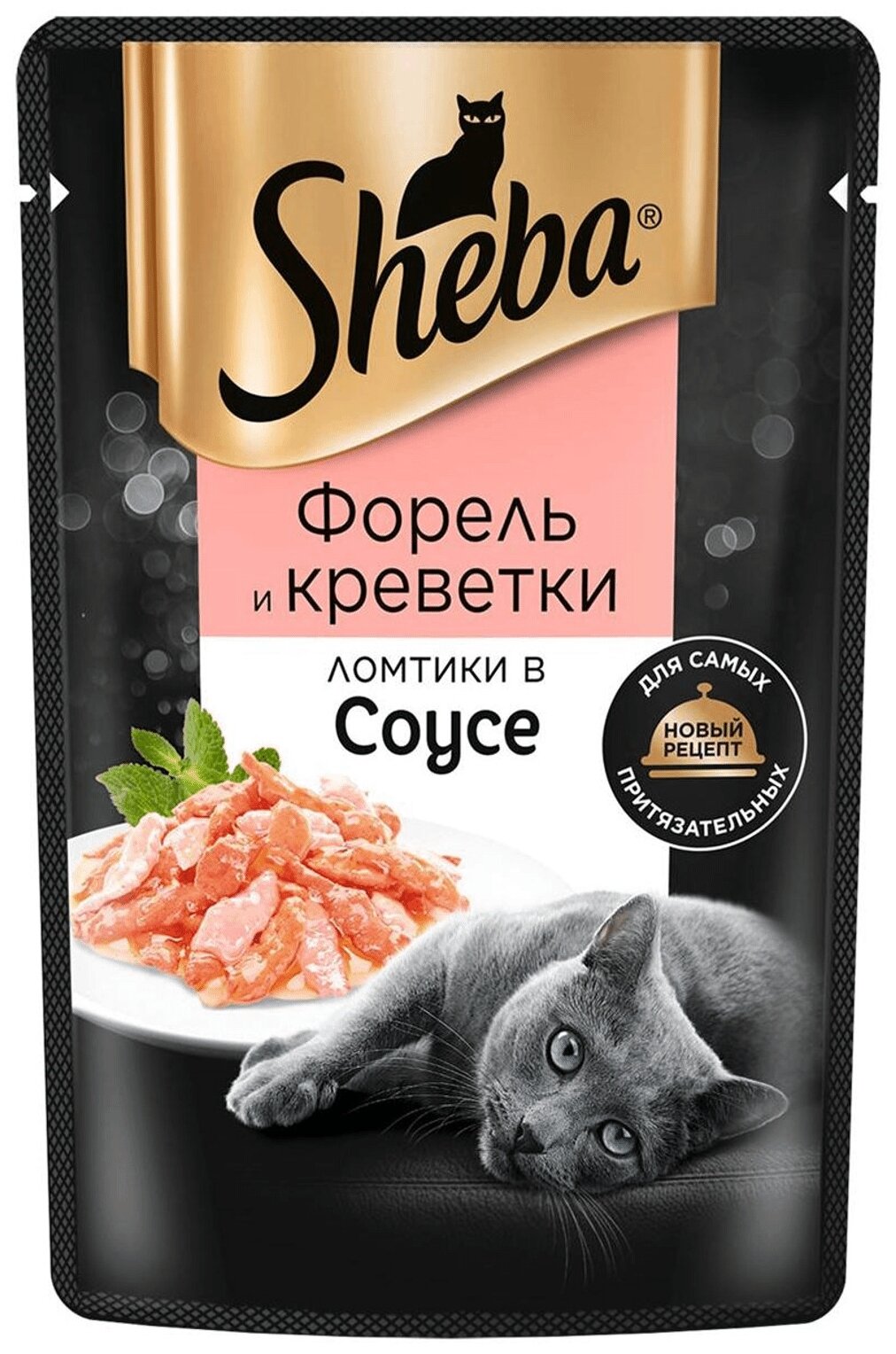 Корм влажный для кошек Sheba, форель и креветки, ломтики в соусе, 75 г