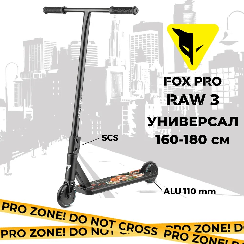 Самокат Fox Pro Fox Raw 3 Black 2021, черный/черный