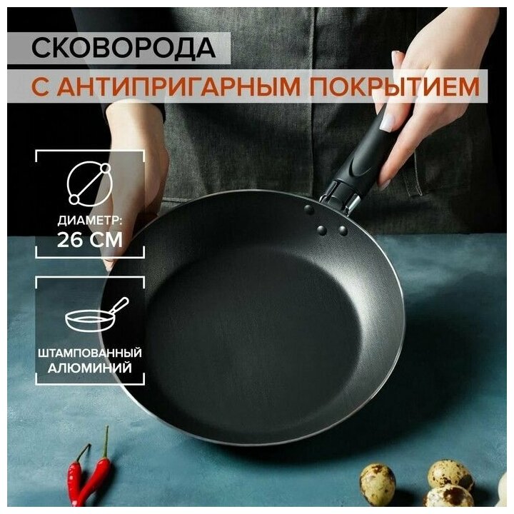 Сковорода Доляна Promo, d=26 см, пластиковая ручка, антипригарное покрытие, цвет бордовый (1 шт.)