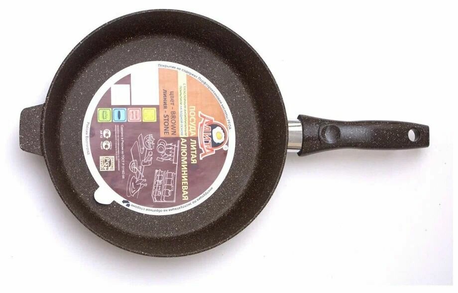 Сковорода алюминий литой А/П 260х60 хозяюшка коричневый камень пласт.ручка (10) алита