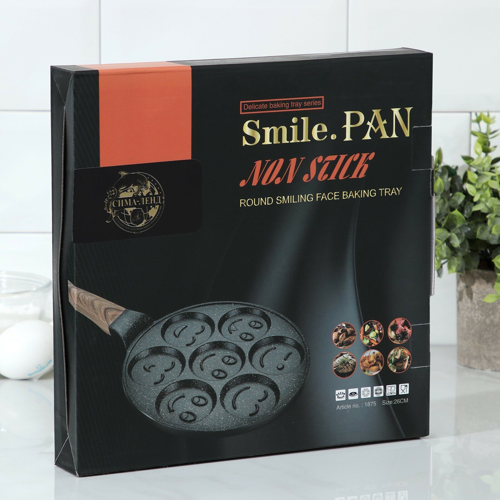 Купить Сковорода-оладница литая Доляна «Смайлы», d=26 см, ручка soft-touch, цвет чёрный