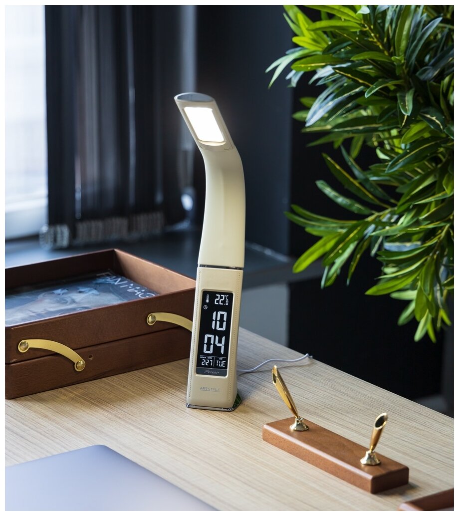ARTSTYLE TL-219BG бежевый, настольный светодиодный светильник, диммируемый, с часами и термометром