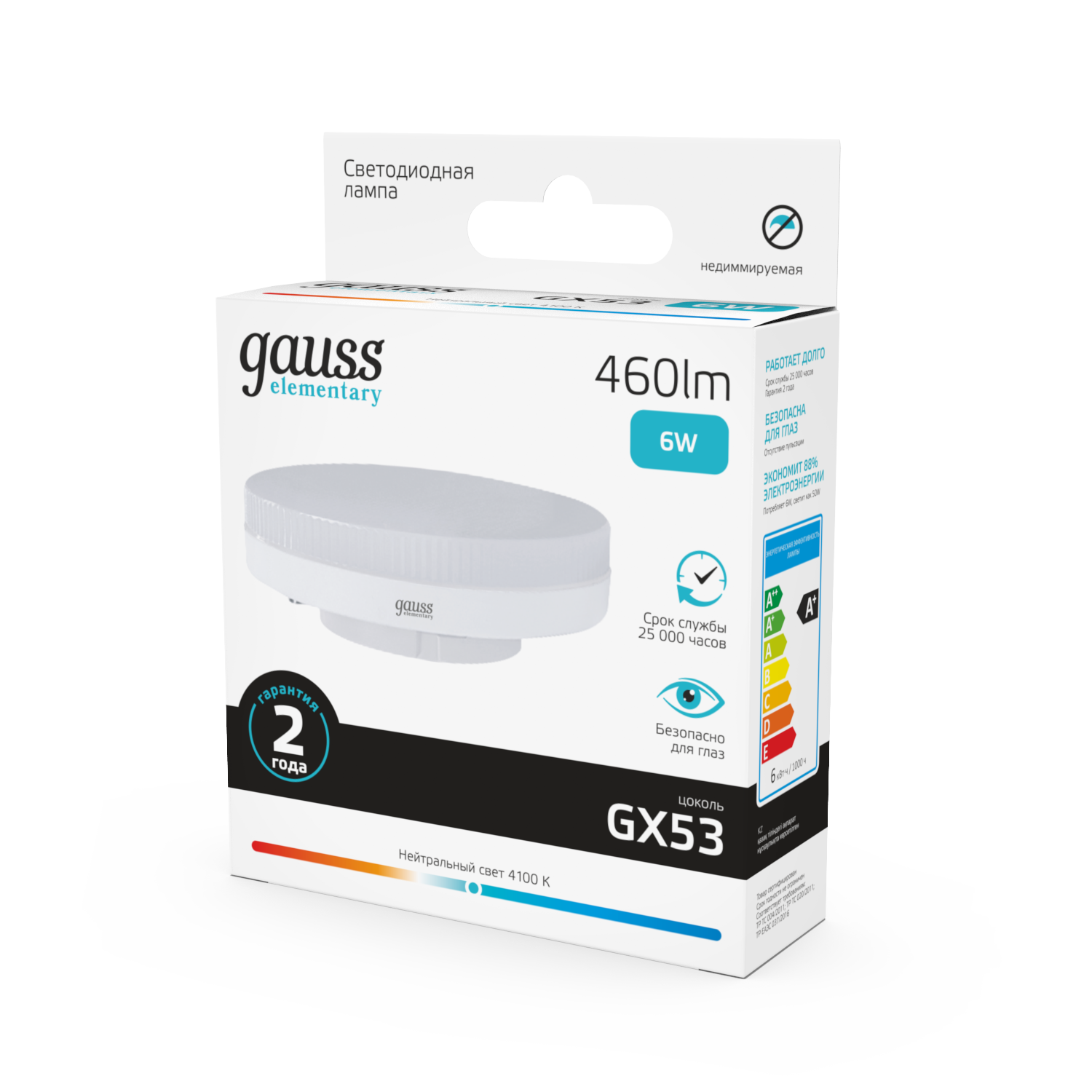 Лампа светодиодная Gauss Elementary 6W GX53 4100K 460lm 83826