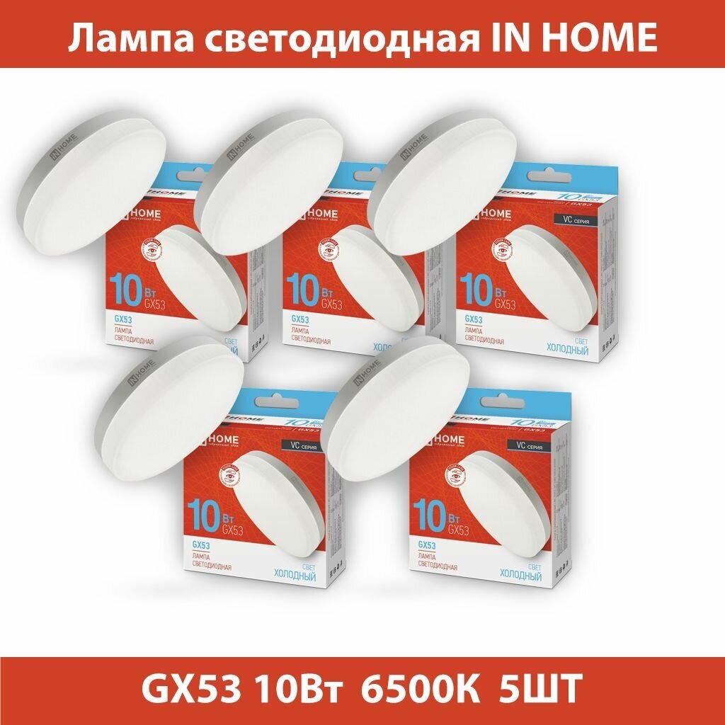 Лампа светодиодная IN HOME LED-GX53-VC, GX53, GX53, 10 Вт, 6500 К