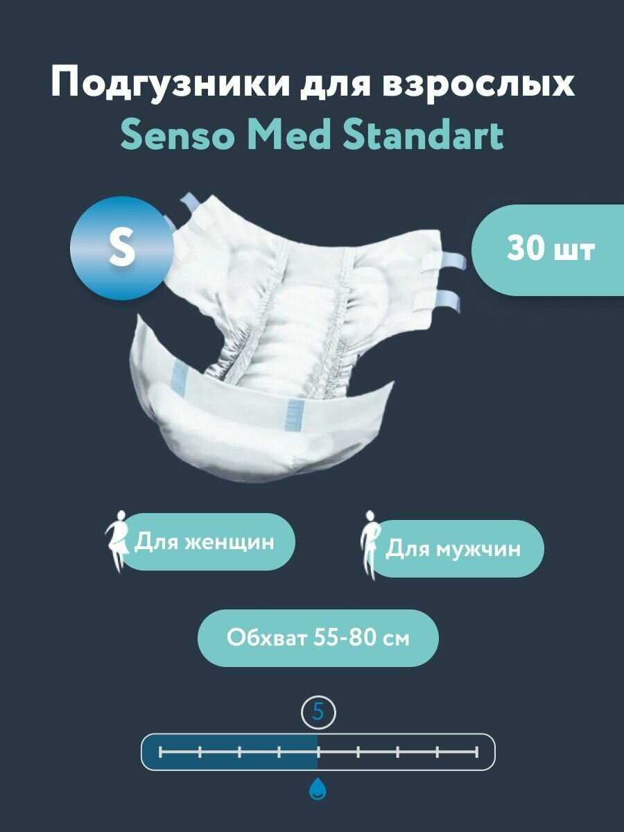 Подгузники для взрослых Senso Med Standart, размер S (55-80), 30 шт .