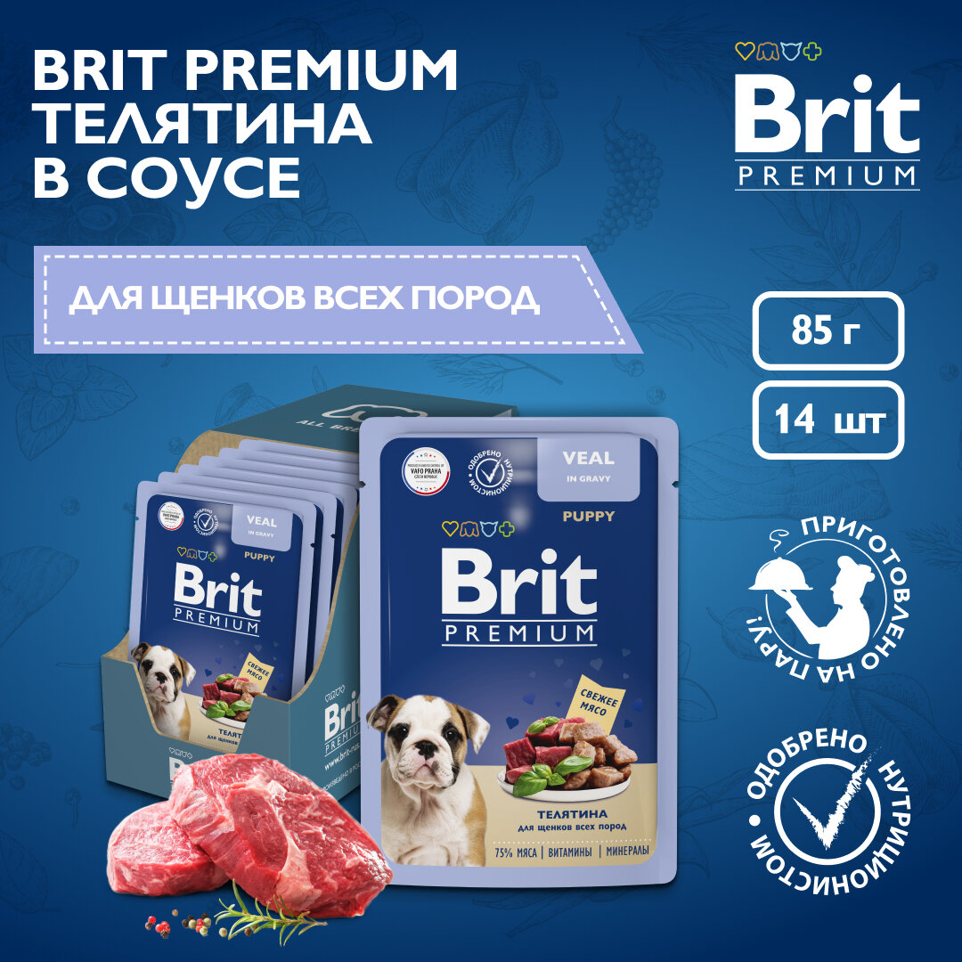 Влажный корм для собак Brit Premium для щенков всех пород телятина в соусе 1 уп. х 14 шт. х 85 г