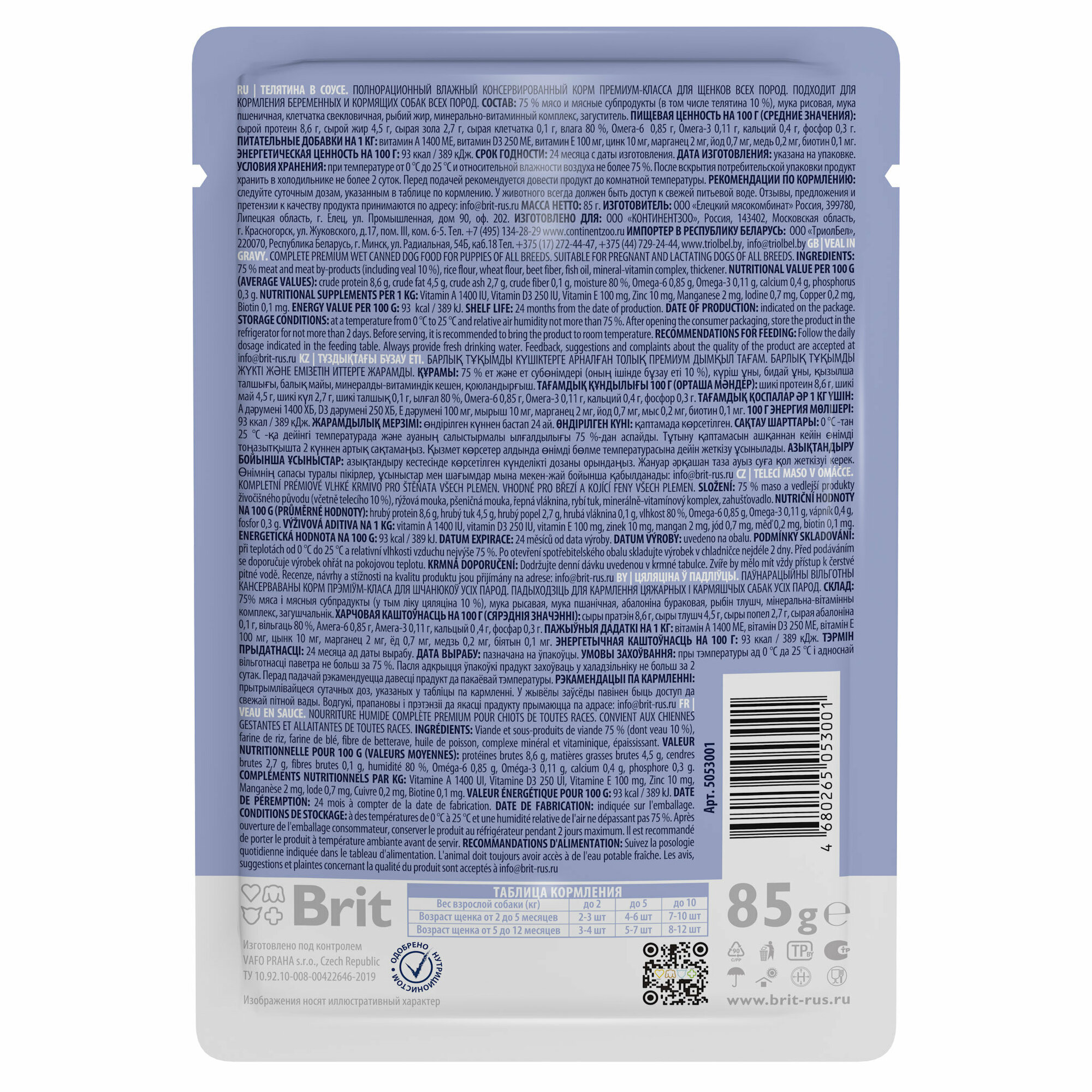 Влажный корм для собак. Пауч для щенков всех пород, Телятина в соусе, 85г, 14 шт BRIT PREMIUM