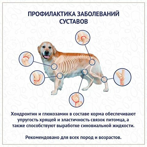 | Пищевая ценность | дегидрированное мясо индейки 39%, крупа гречневая, рис, жир индейки, дегидрированное мясо рыбы, мякоть сахарной свеклы (источник пребиотиков), гидролизованные белки птицы, масло подсолнечное, рыбий жир (лососевый и других морских видов), свежая морковь (источник каротина), свежее яблоко (содержит минералы и пектин), зародыш пшеничный (источник октакозанола, фитостеролов, аллантоина, сквалена), витаминно-минеральный комплекс, пивные дрожжи (источник маннанолигосахаридов и бета-глюканов), волокна пищевые растительные (источник пребиотиков), семена подорожника (источник омега жирных кислот, пребиотических волокон и слизистых веществ), минеральные добавки, сульфат хондроитина (1300 мг), метионин, корень цикория (источник инулина), антиоксидант, D-глюкозамин гидрохлорид (600 мг), экстракт бархатцев (источник лютеина и зеаксантина), юкка шидигера |
