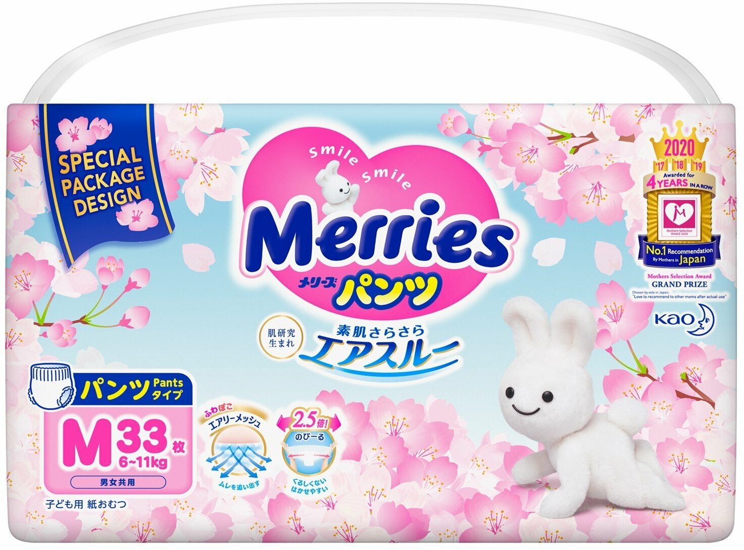 Трусики-подгузники Merries для детей, размер M, 6-11 кг, 33 шт (991734/601534)