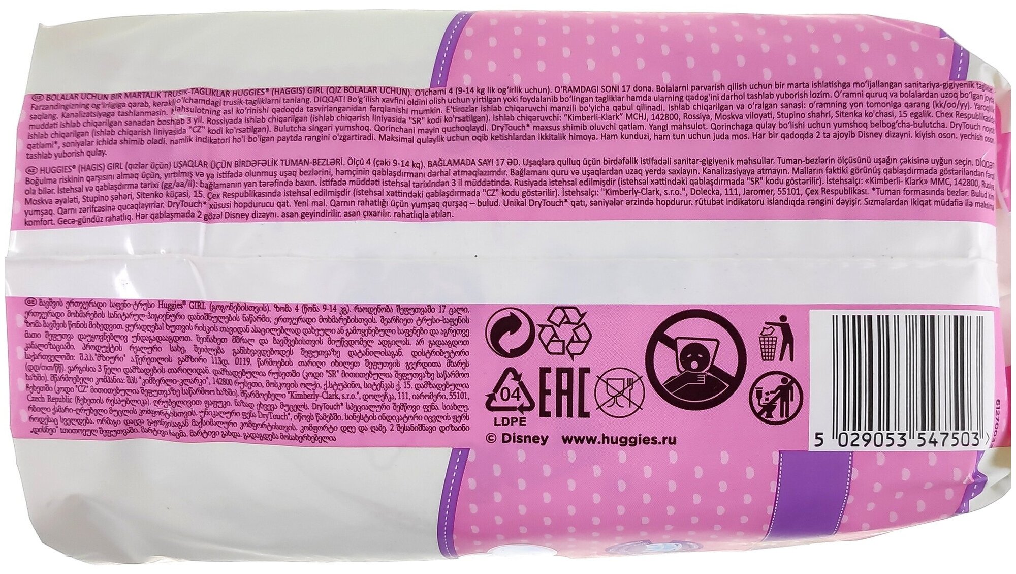 Купить Huggies трусики для девочек 4, 9-14 кг, 17 шт.