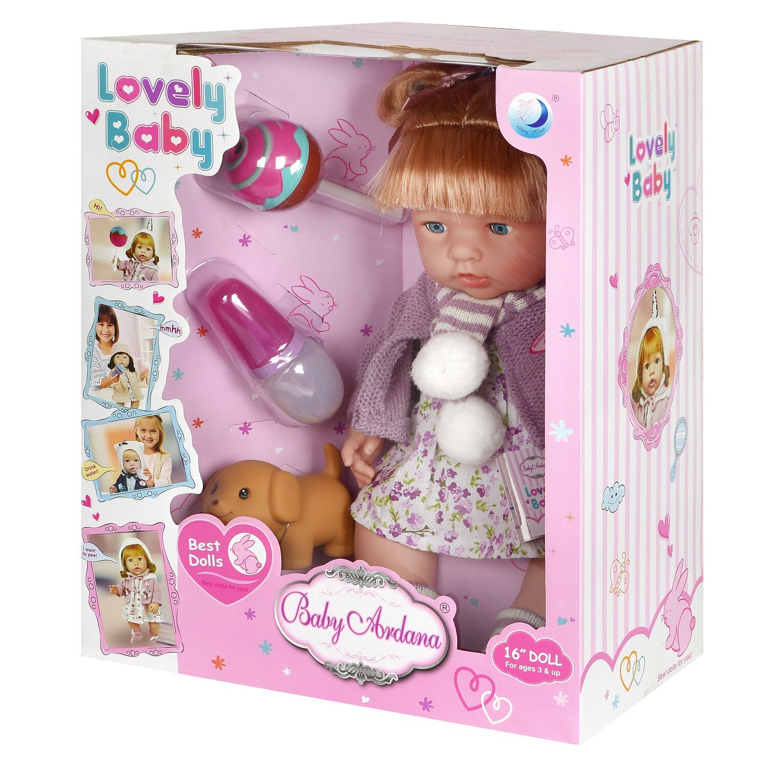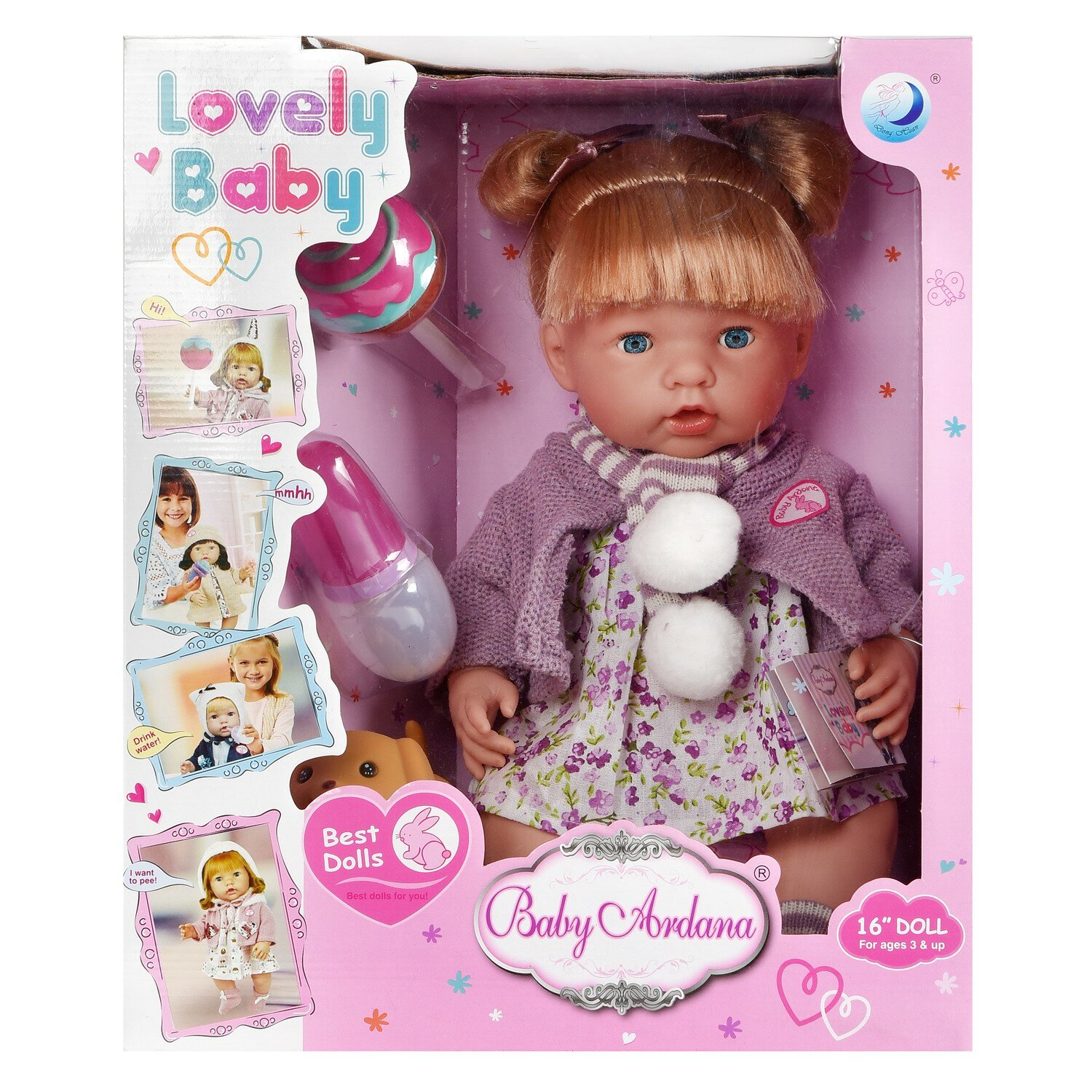 Пупс-кукла "Baby Ardana", 40см, в платье и розовой кофточке с капюшоном, в наборе с аксессуарами, в коробке