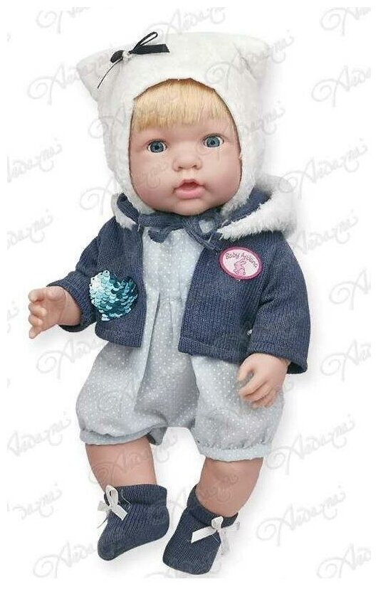 Пупс-кукла Baby Ardana, в комбинезоне и синей курточке, в наборе с аксессуарами, в коробке, 40см