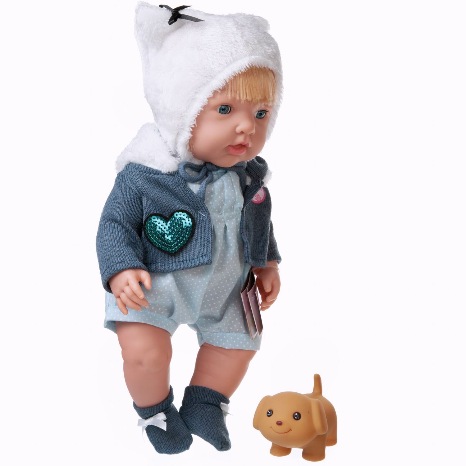 Пупс-кукла "Baby Ardana", в комбинезоне и синей курточке, в наборе с аксессуарами, в коробке, 40см