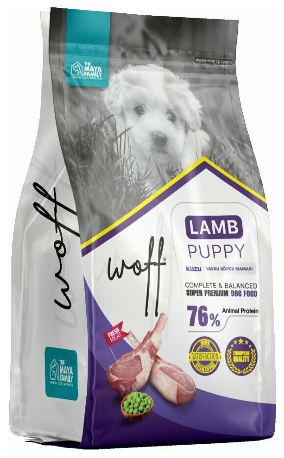Сухой корм WOFF Puppy для щенков, кормящих и беременных собак всех пород, ягнёнок, 2,5 кг