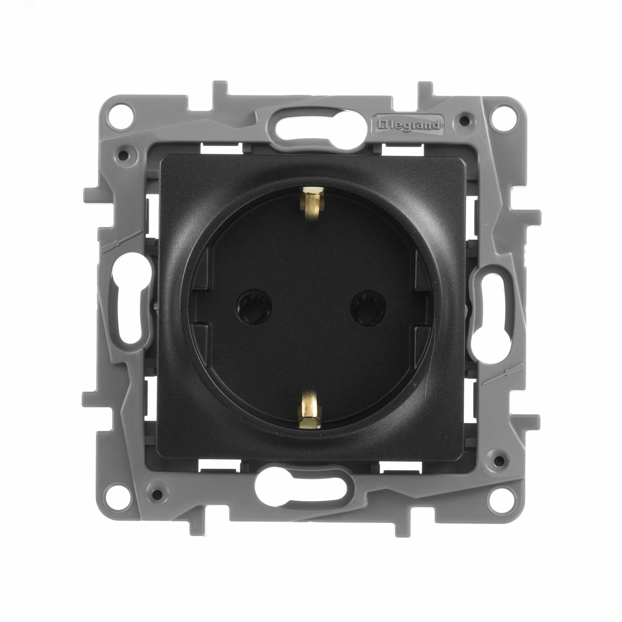 Розетка с заземлением Legrand Inspiria для скрытого монтажа , цвет "Антрацит", ток 16 А, напряжение ~250В, максимальная мощность 3680 Вт.