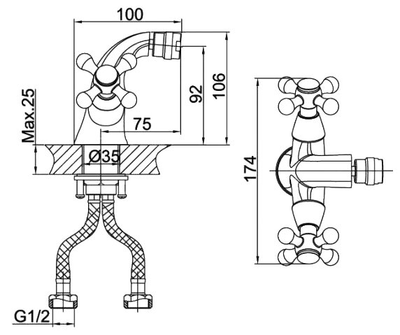 Смеситель для биде D&K Hessen Hercules DA1422241, хром, вентильный, латунь.