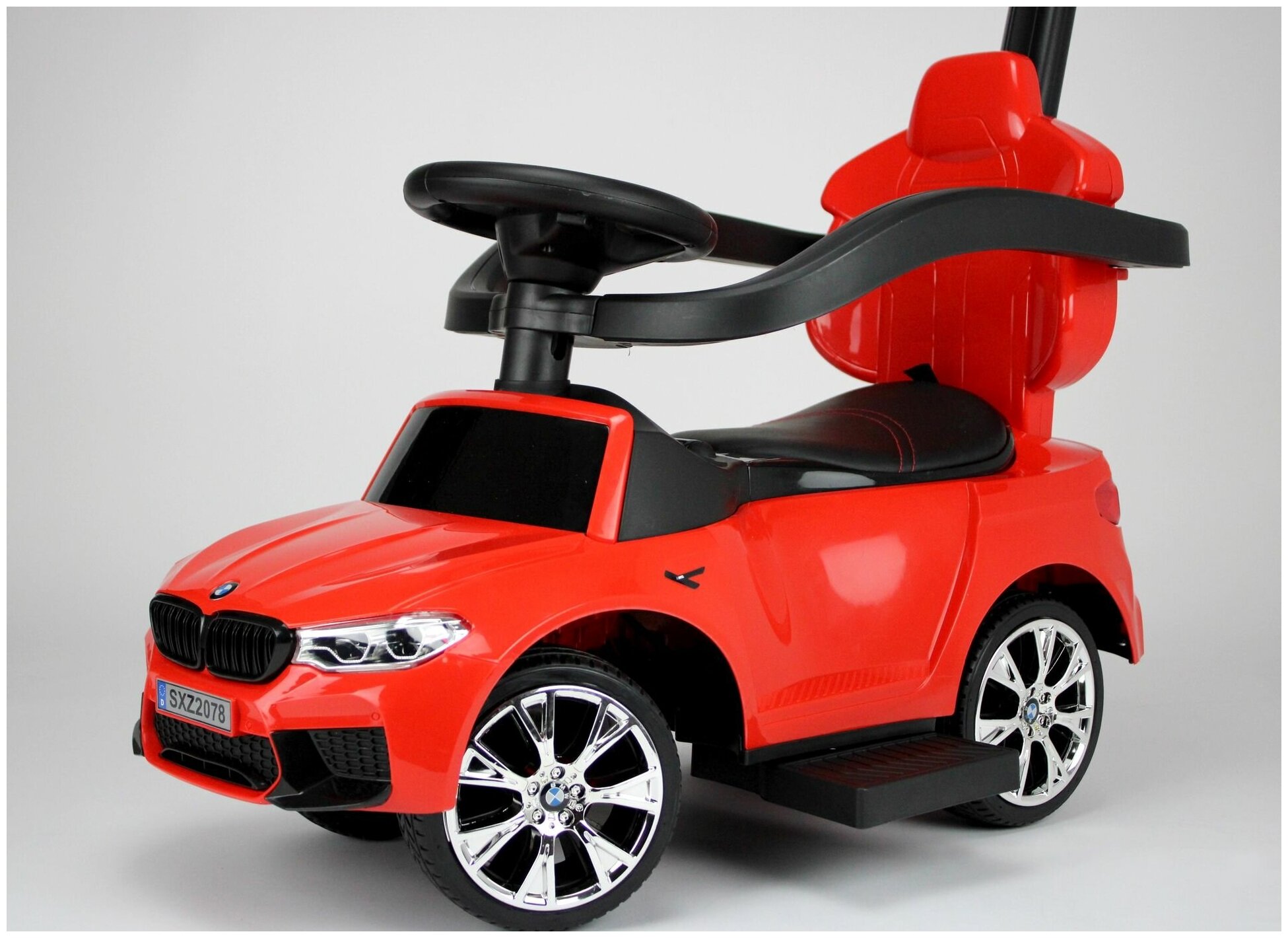 Купить Толокар каталка BMW M5 с ручкой свет/звук/резина/кожа с качалкой