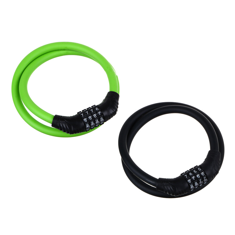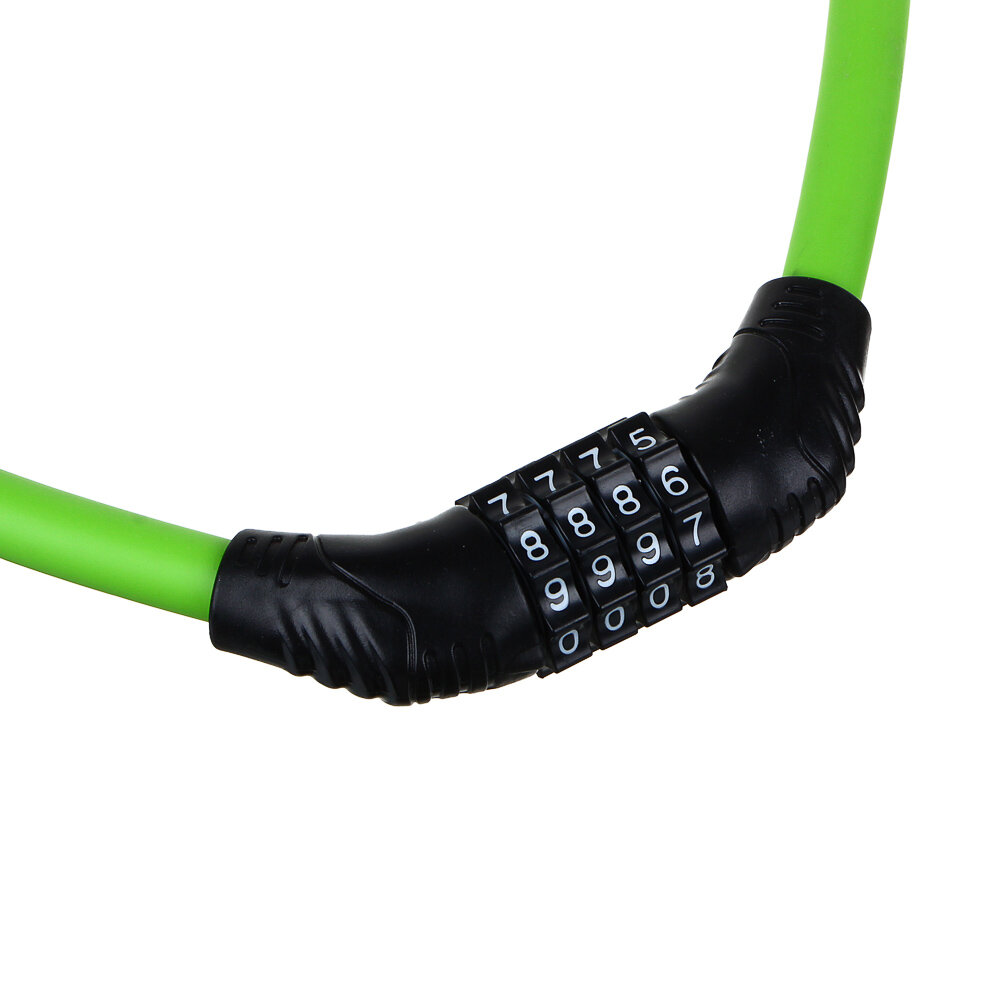 Замок велосипедный, 12x800мм, с матовым кодовым замком из 4 цифр, (в ассортименте) (цена за 1 шт.)